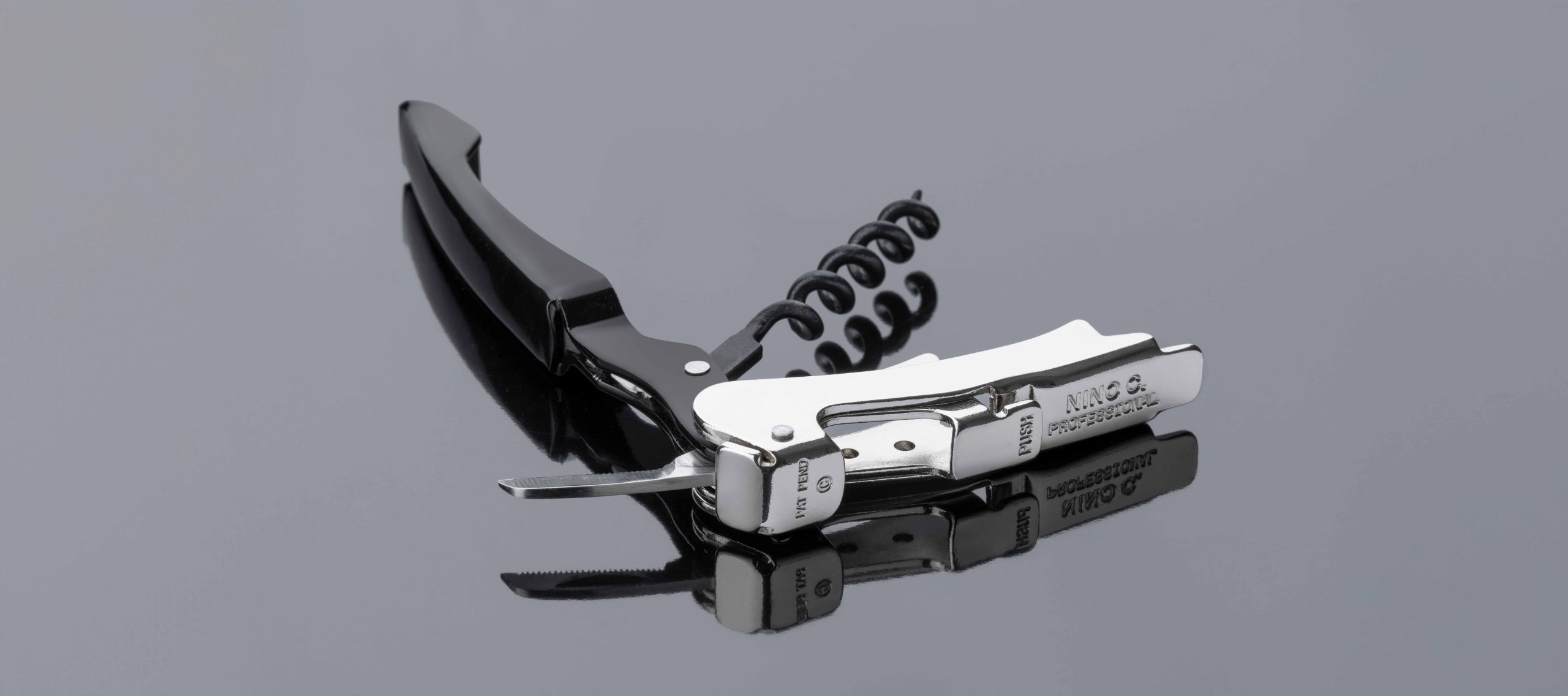 The professional two-stage wine opener Nino C. with a double lever allows for easy cork extraction without any annoying complications. Its ergonomic handle, Teflon spiral, and blade with automatic locking when opening the levers are just some of the excellent features that make this opener unique.
