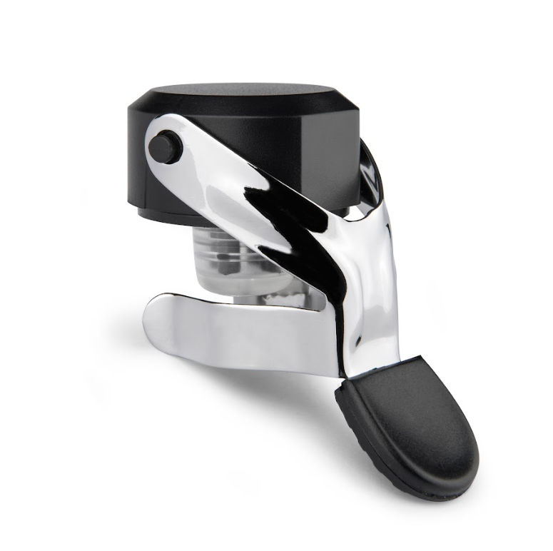 Top-quality stopper for sparkling and still wines with patented technology of four lamellae, which prevents the release of carbon pearls from a sparkling wine. Practical and ergonomic – allows you to open and close the bottle with one hand.